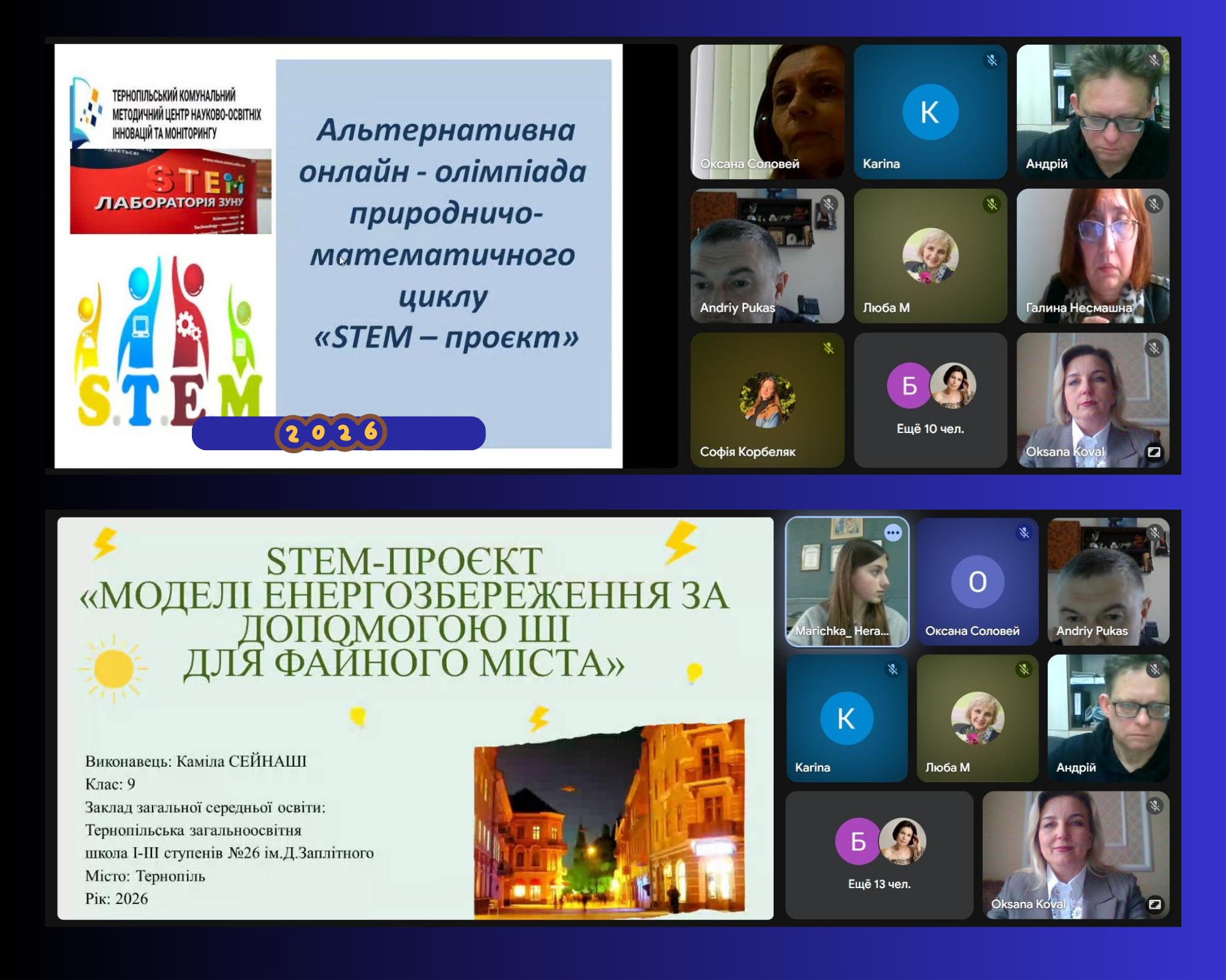 1 квітня 2026 року на базі Тернопільського комунального методичного центру науково-освітніх інновацій та моніторингу відбувся фінальний етап альтернативної онлайн-олімпіади природничо-математичного циклу «STEM-проєкт» для учнів 9-11 класів. Цьогоріч до співорганізації заходу та роботи у складі журі була запрошена науковий керівник Науково-дослідної лабораторії STEM-освіти, директор навчально-наукового центру комунікацій, доцент кафедри економічної кібернетики та інформатики Західноукраїнського національного університету Оксана Коваль.